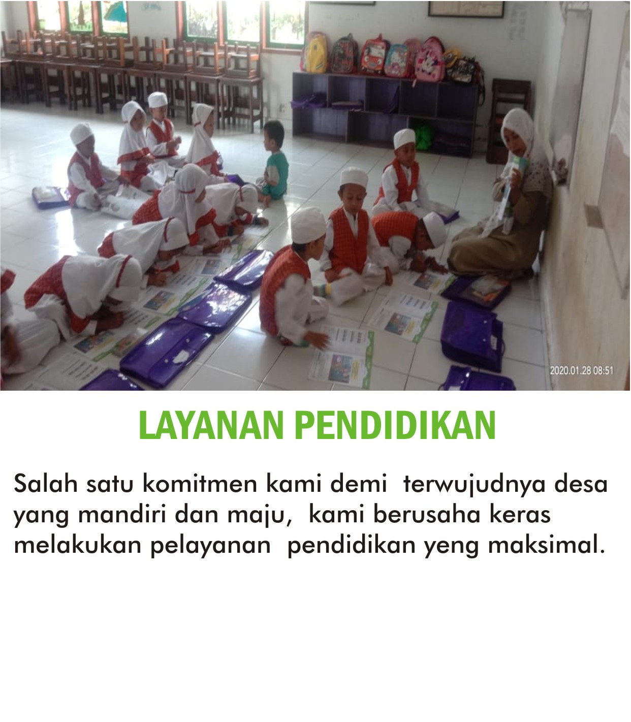 Salah satu komitmen kami demi terwujudnya desa yang mandiri dan maju, kami berusaha keras melakukan pelayanan pendidikan yeng maksimal.